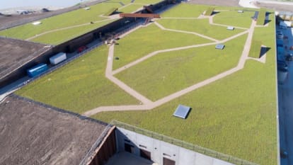 eter høj bakke, hvor en grøn ”gågade” mellem renseanlæggets to funktionsafsnit giver de besøgende mulighed for at se renseprocessen gennem store glaspartier.