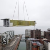 Byggeriet af Danmarks største kontorhus med bærende konstruktioner i træ begynder en ny fase. Træsøjlerne og dækkene er nemlig begyndt at ankomme til byggepladsen.