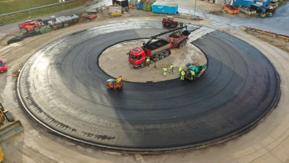 For at sikre en perfekt overflade på fundamentet blev kollegerne fra NCC Asfalt kontaktet for at lægge et 85 mm. GAB-lag, der består af en kombination af grus, asfaltblandinger og beton. Derudover blev der påført et 30 mm slidlag på tankerne.