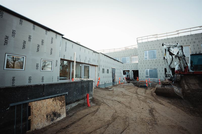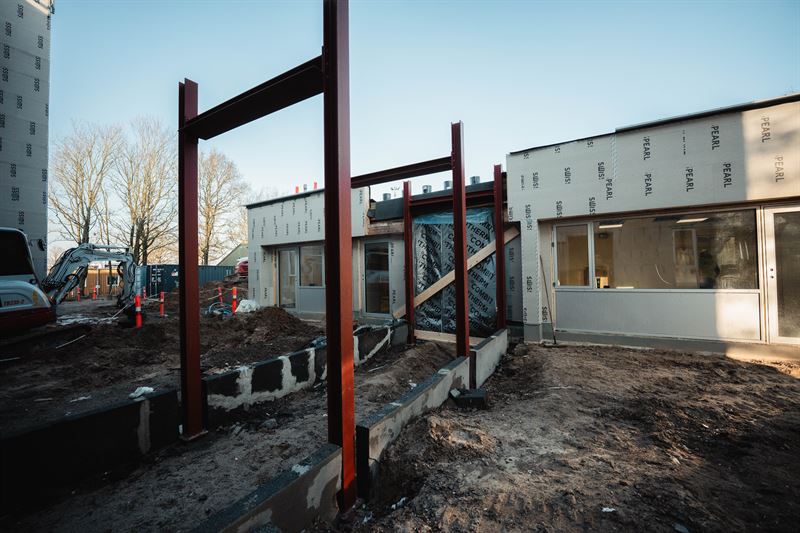 NCC’s byggeteam indrettede sin byggeplads og flyttede ind på skolens område i maj måned sidste år, og siden er arbejdet skredet godt fremad – både med renoveringen af eksisterende bygninger og opførelsen af en ny tilbygning, der skal certificeres efter Svanemærket.