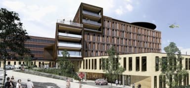 Det nye akutcenter rummer blandt andet en ny hovedindgang, nye operationsstuer og sengeafsnit med ensengsstuer.