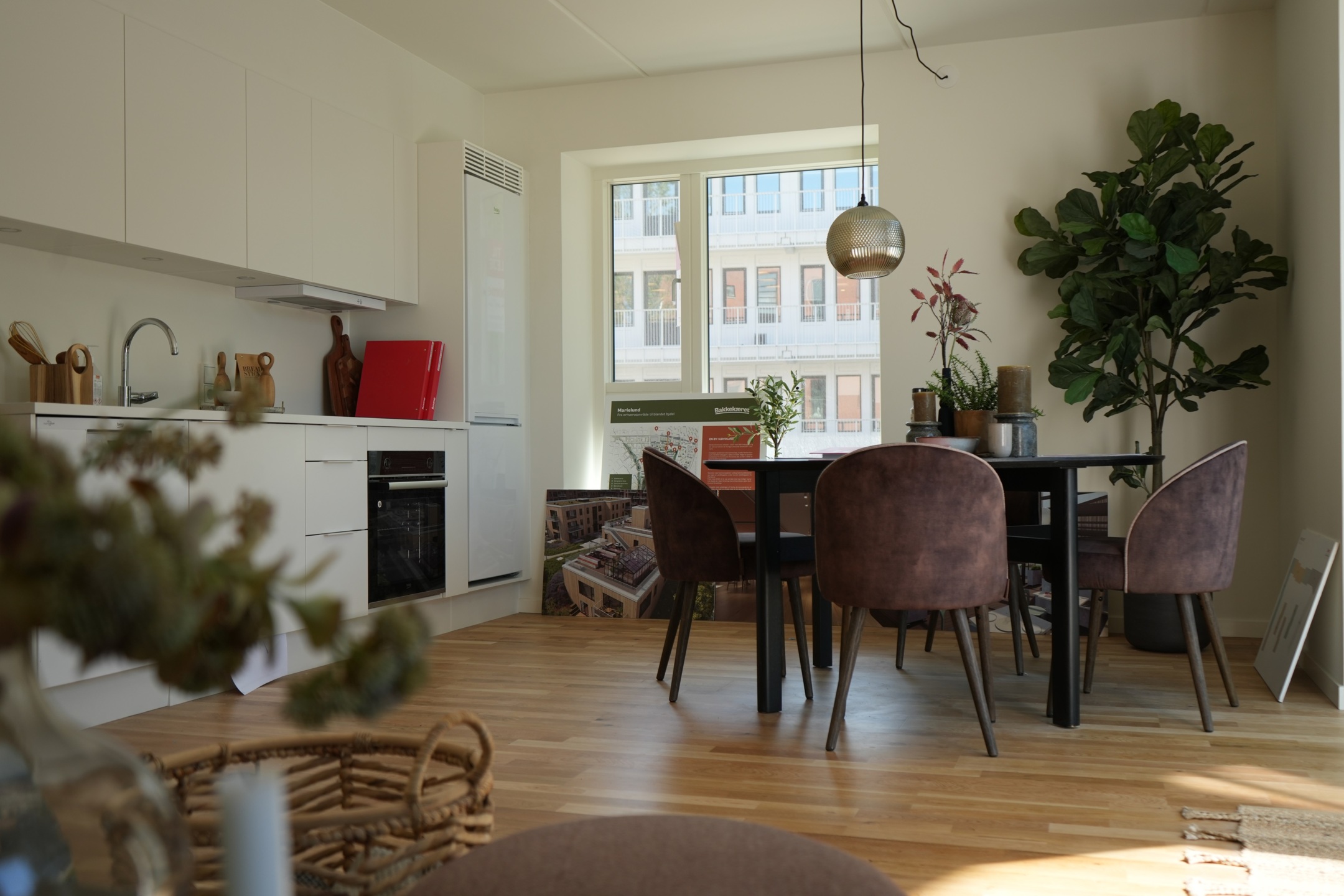 Boligerne er fra to værelser til fire værelser og med en gennemsnitlig størrelse på 75 kvadratmeter, desuden har mange af dem altan eller terrasse. Der er etableret fællesrum til aktiviteter for beboerne og fælles tagterrasser.