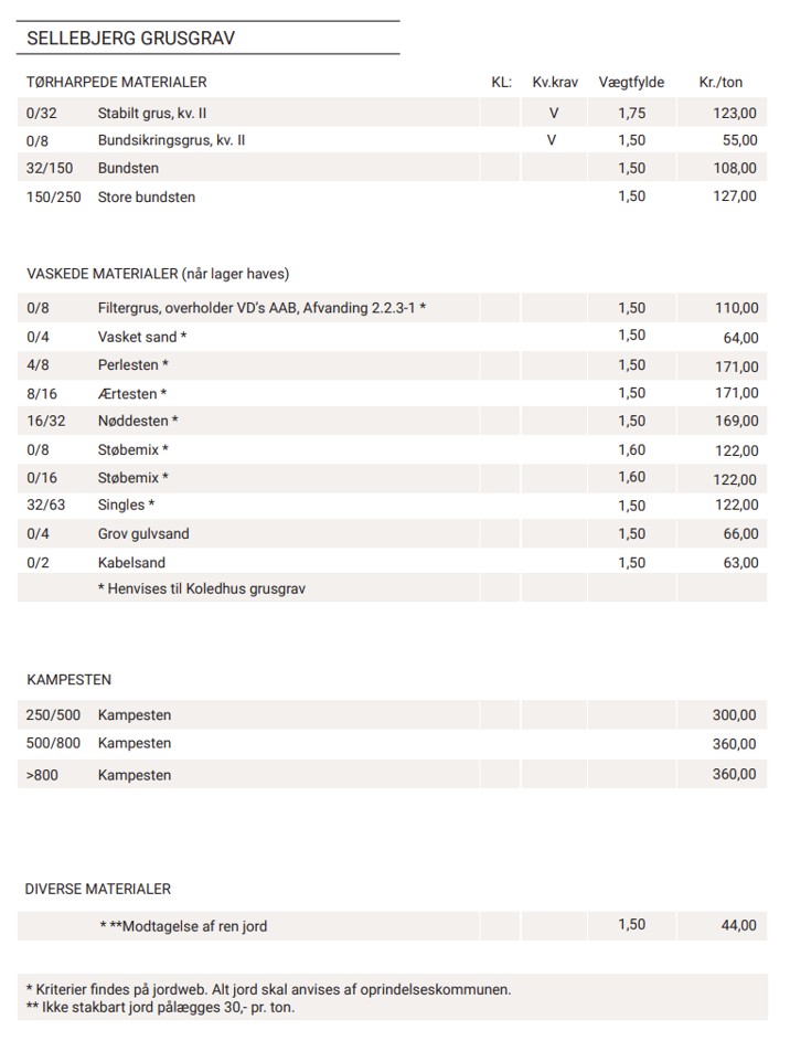 Sellebjerg Grusgrav - produkter, priser og kontakter